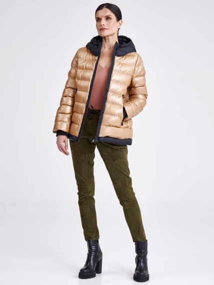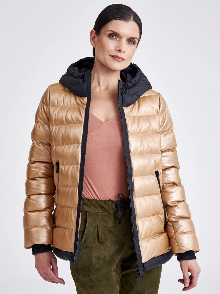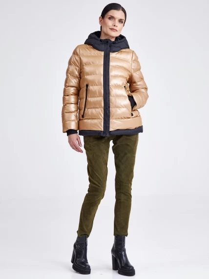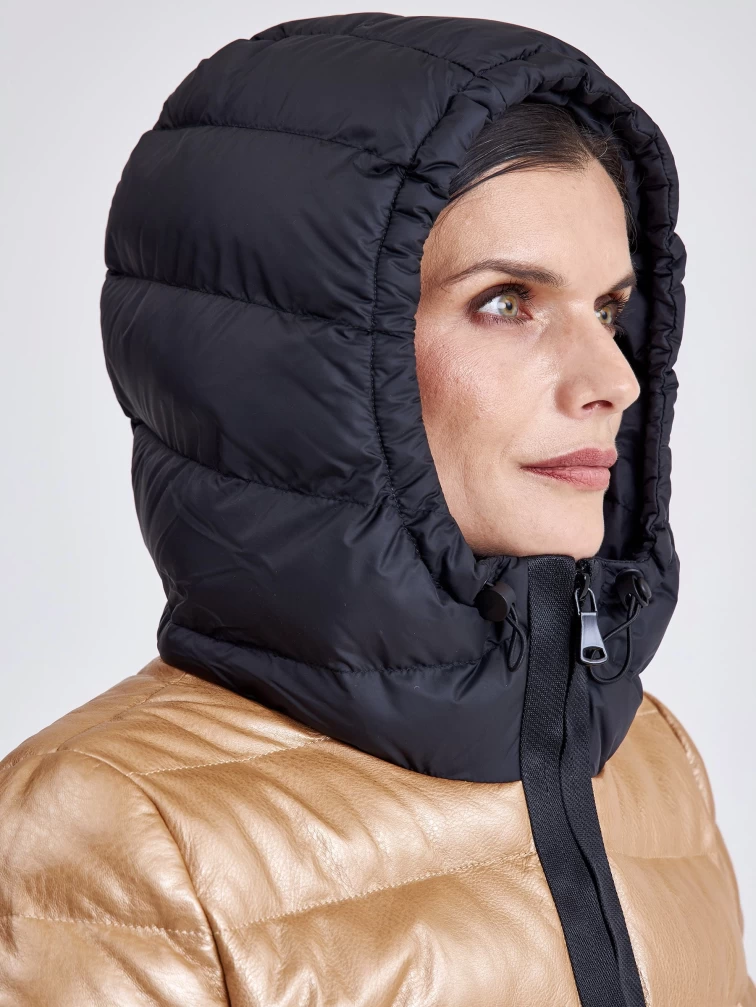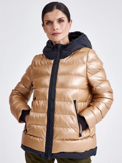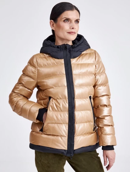 Женская кожаная куртка с капюшоном премиум класса 3028, бежевая, размер 44, артикул 23340