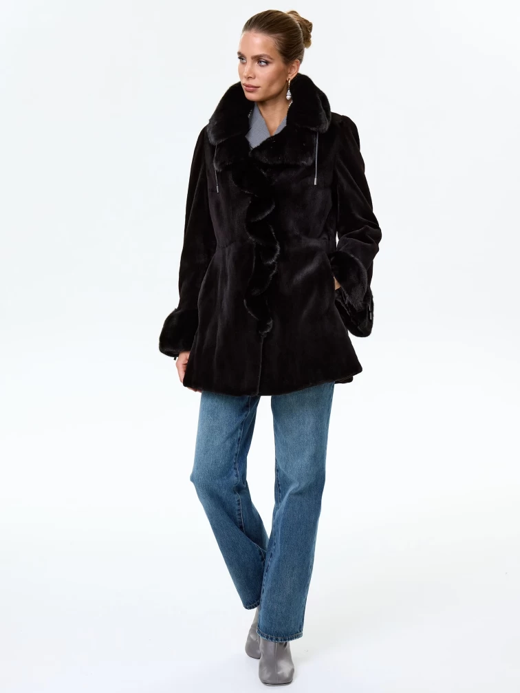 Товар женская норковая шуба премиум класса лика, черная, размер 48, артикул 34190 выполнен из норка с застежкой клипсы. Рассчитан на сезон: зима. Длина изделия 80 см, силуэт прямой.