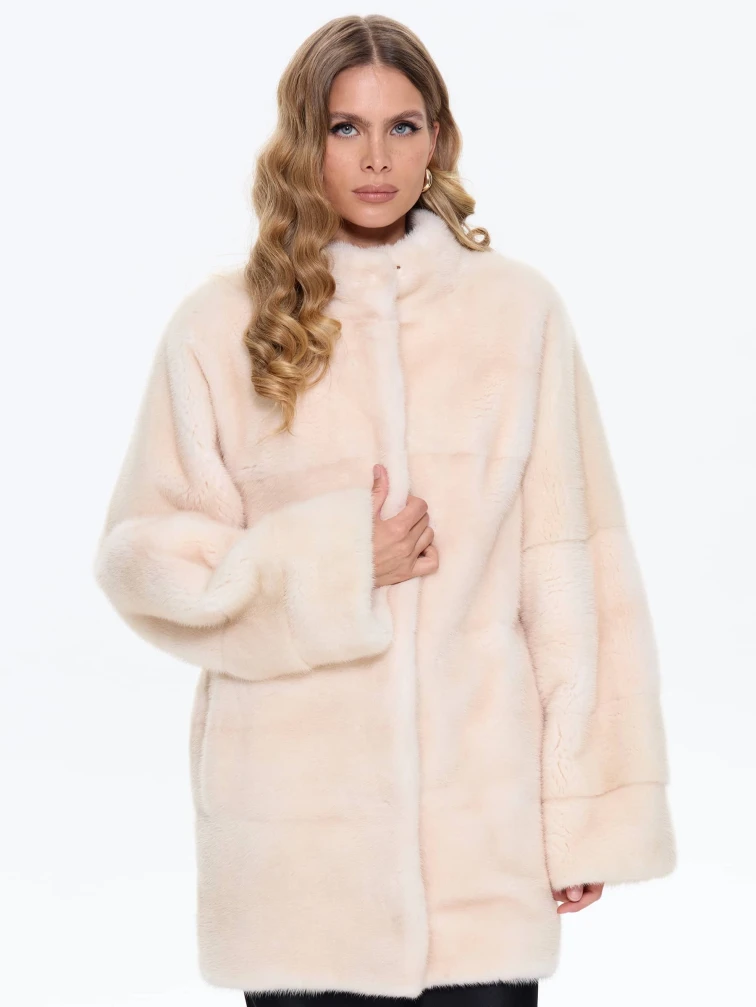 Женская поперечная норковая шуба BRASCHI LE88, бежевая, размер 40, артикул 34330