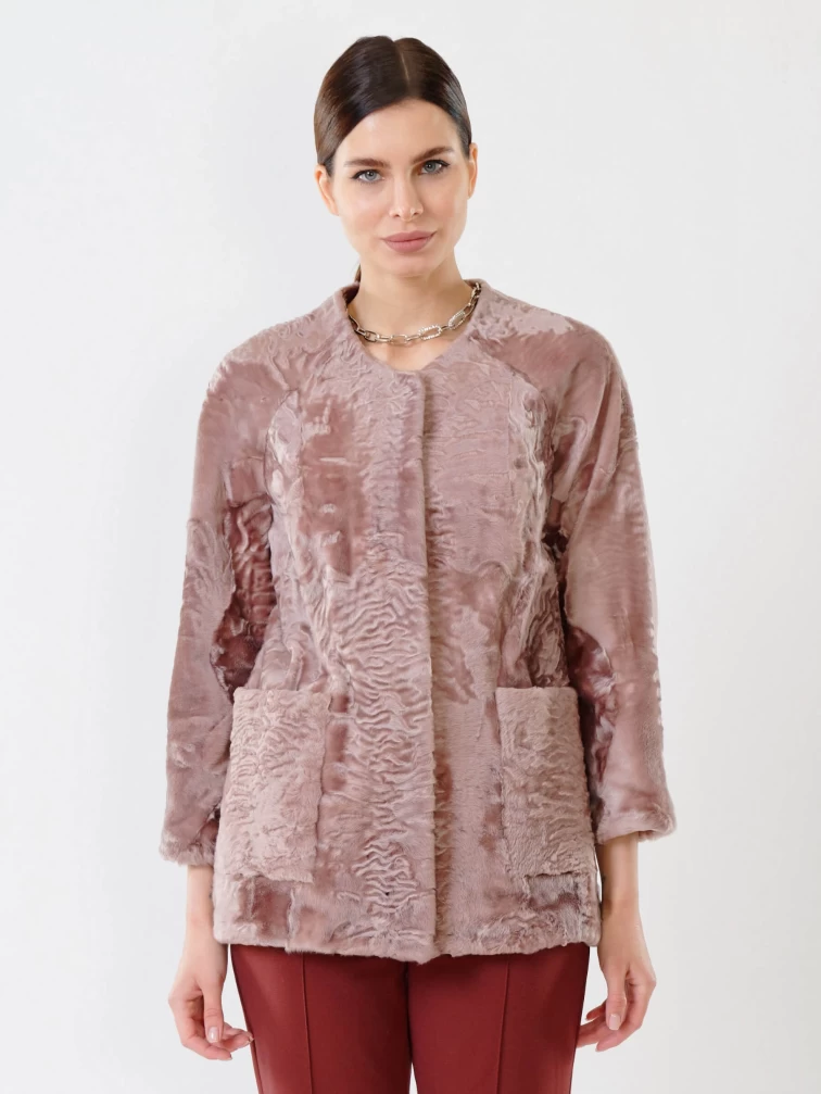 Куртка из каракуля женская 17309, розовая, размер 48, артикул 22530