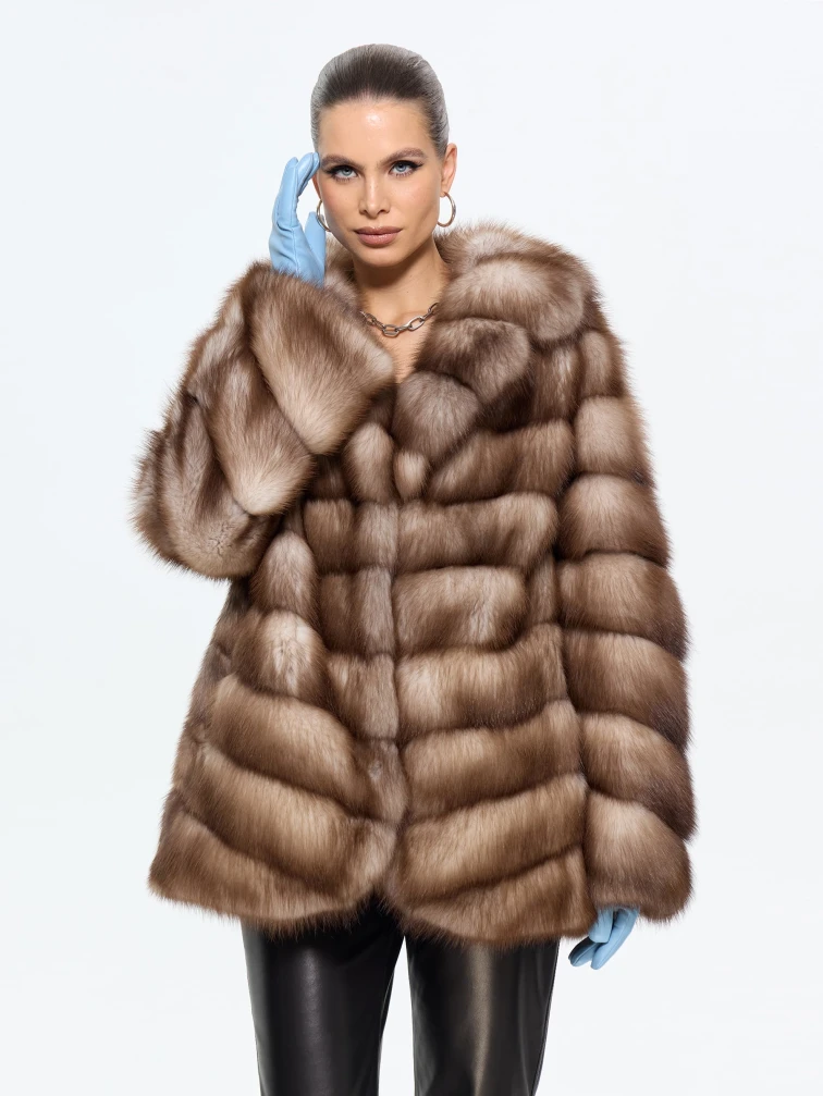 Элегантная шуба из меха куницы-каменки прямого силуэта длиной 70 см — это воплощение классического стиля и роскоши. Модель с изысканным английским воротником и втачными рукавами на удобных клипсах идеально сохраняет тепло и подчеркивает достоинства фигуры. Стилисты рекомендуют носить эту шубу из меха куницы с воротником, повязавшим шею шелковым платком, с кожаными перчатками и классическими сапогами-челси для безупречного городского образа.