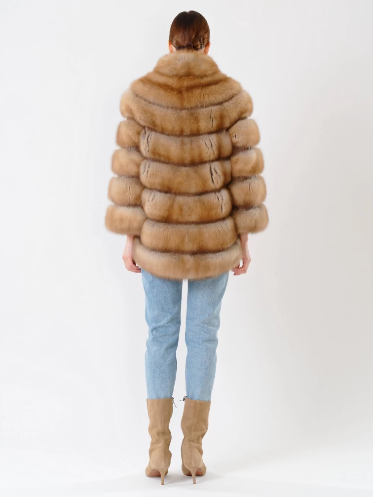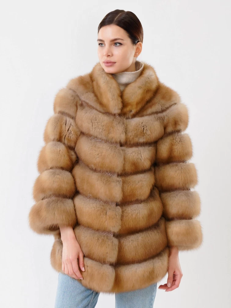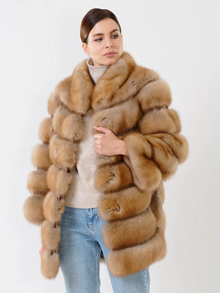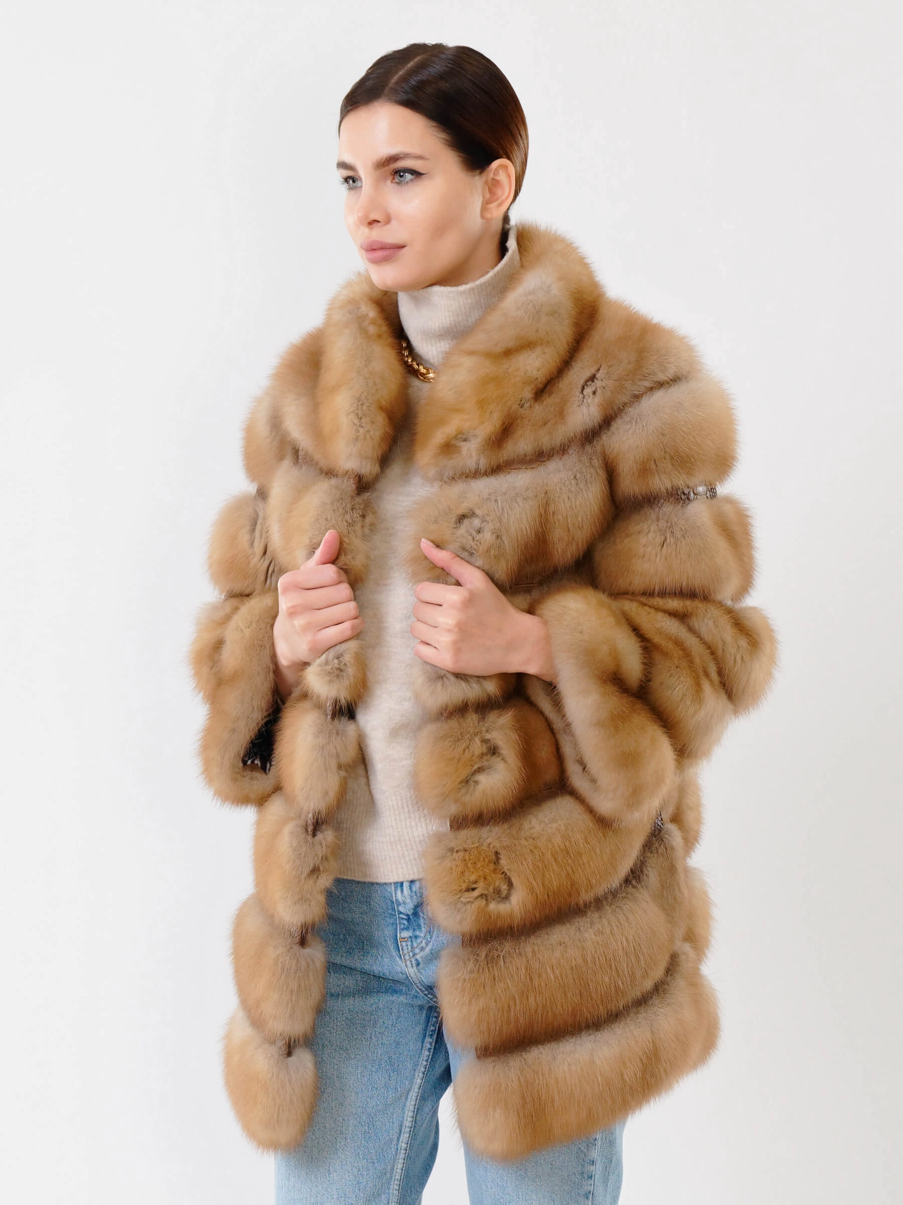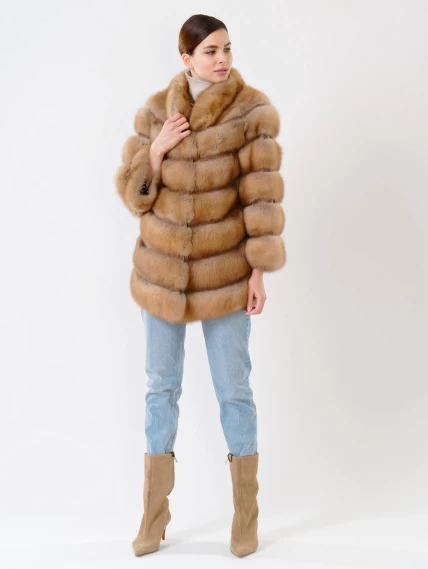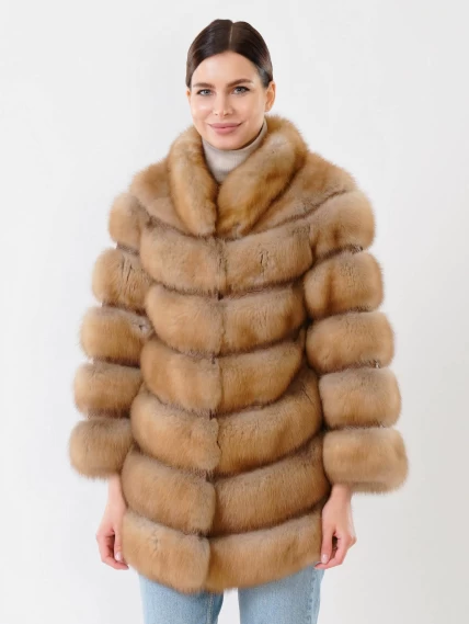 Шуба из меха куницы премиум класса для женщин С-16, светло-коричневая, размер 44, артикул 19090