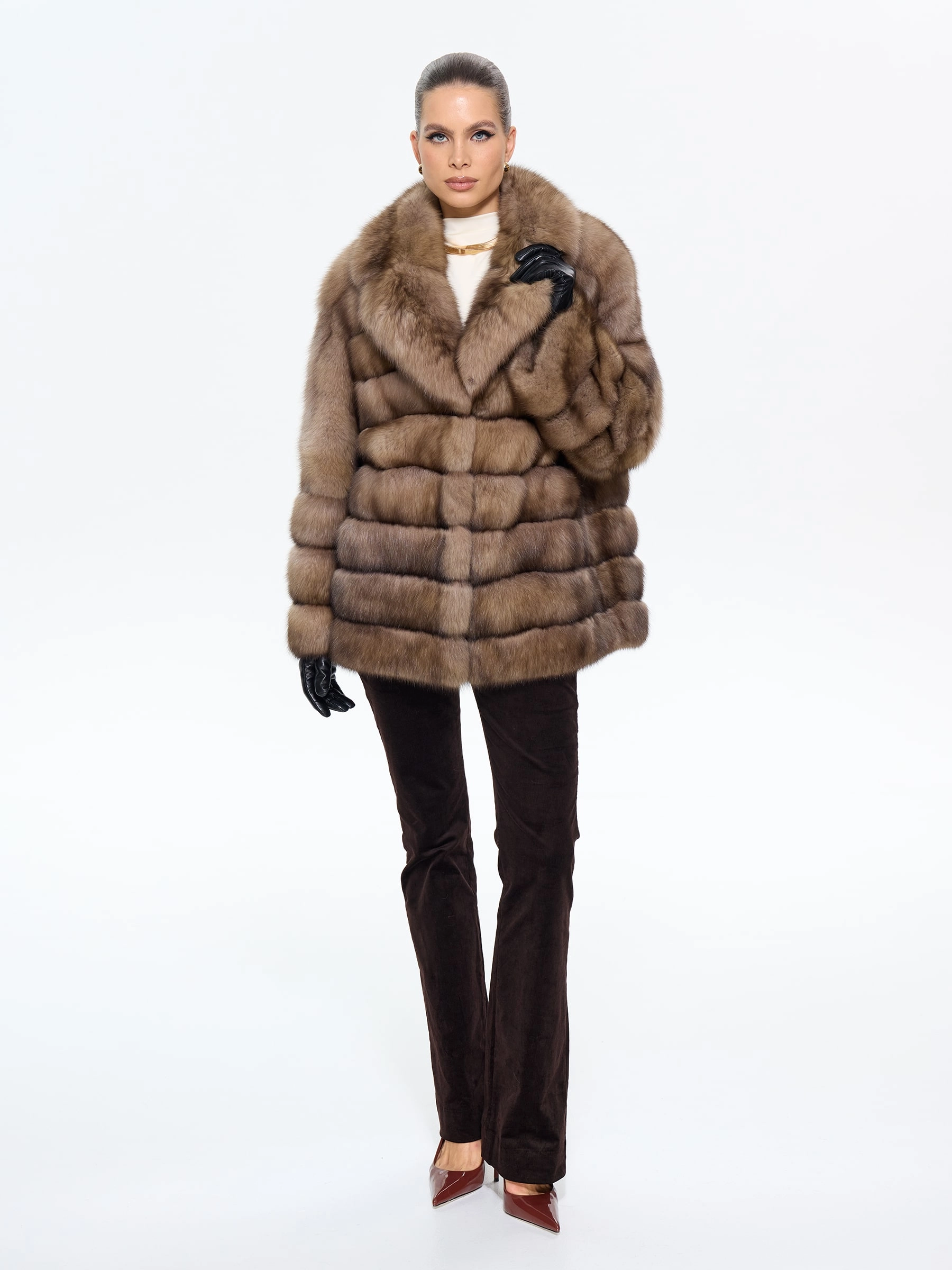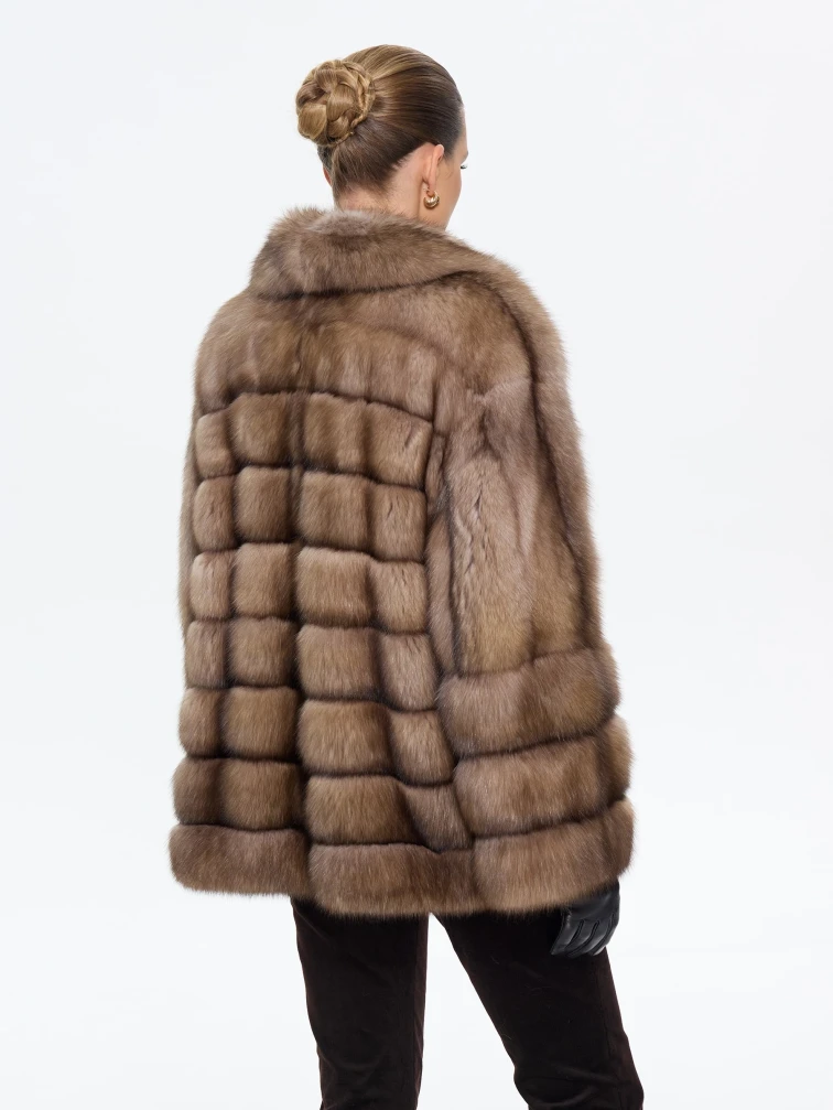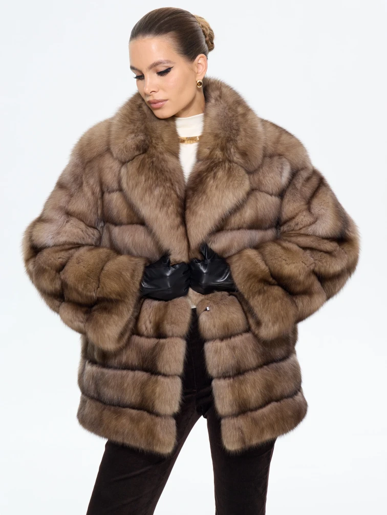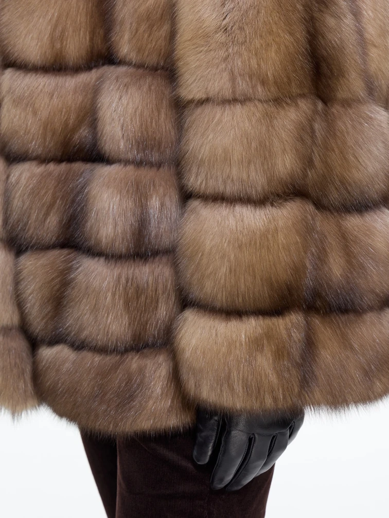 Женская шуба из меха соболя с английским воротником — это эталон роскоши и безупречного вкуса. Модель прямого силуэта длиной 70 см из натурального соболя цвета натуральный подчеркивает элегантность и статус. Выразительный английский воротник и спущенная линия плеча добавляют образу благородной легкости. Стилисты рекомендуют носить эту шубу с вечерними платьями, классическими костюмами или утонченными knit-комплектами, чтобы создать целостный образ для особых случаев. Естественная игра оттенков меха делает каждую модель уникальной.