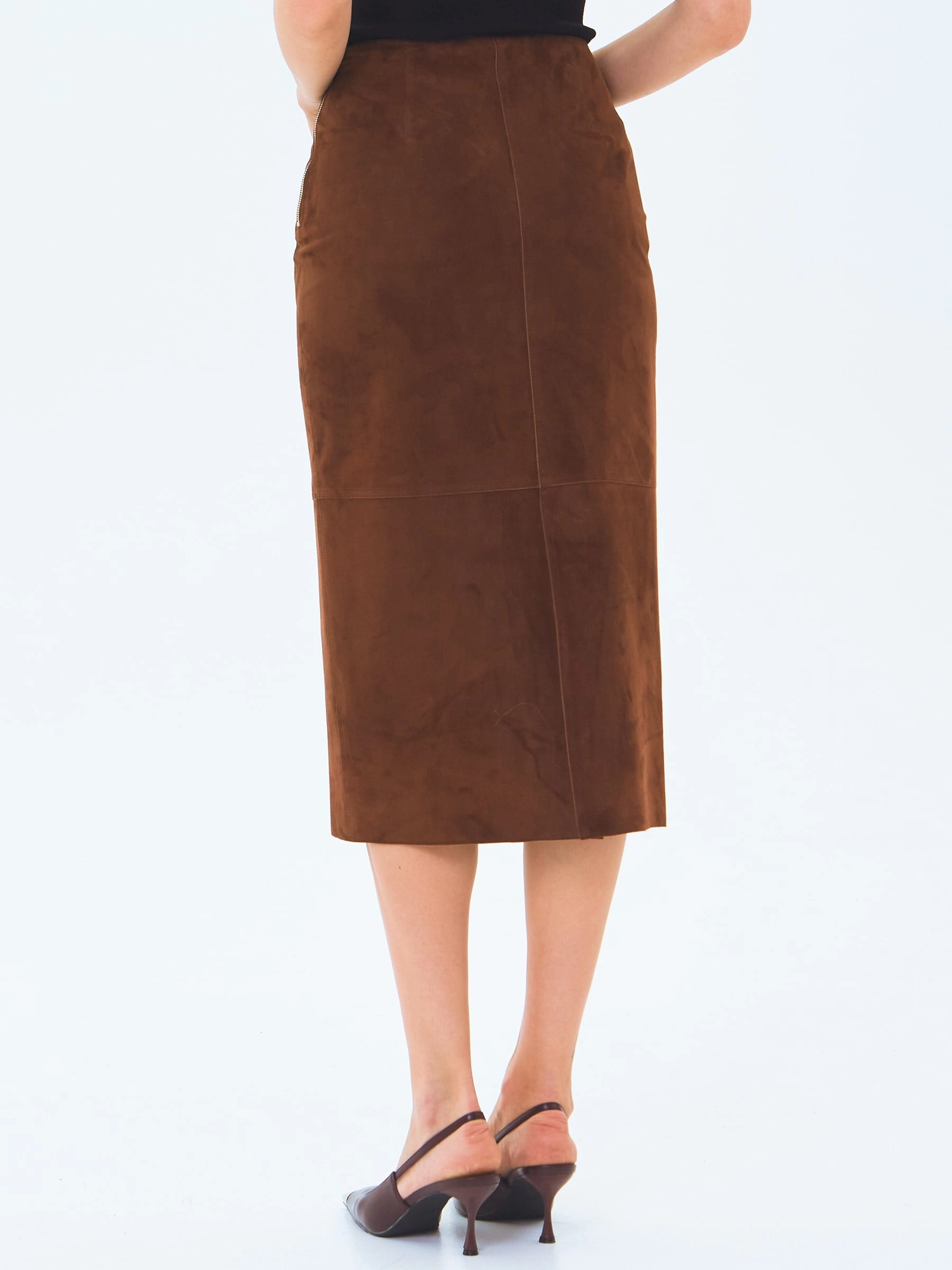Замшевая юбка-миди 18з, коньячная, размер 42, артикул 85990