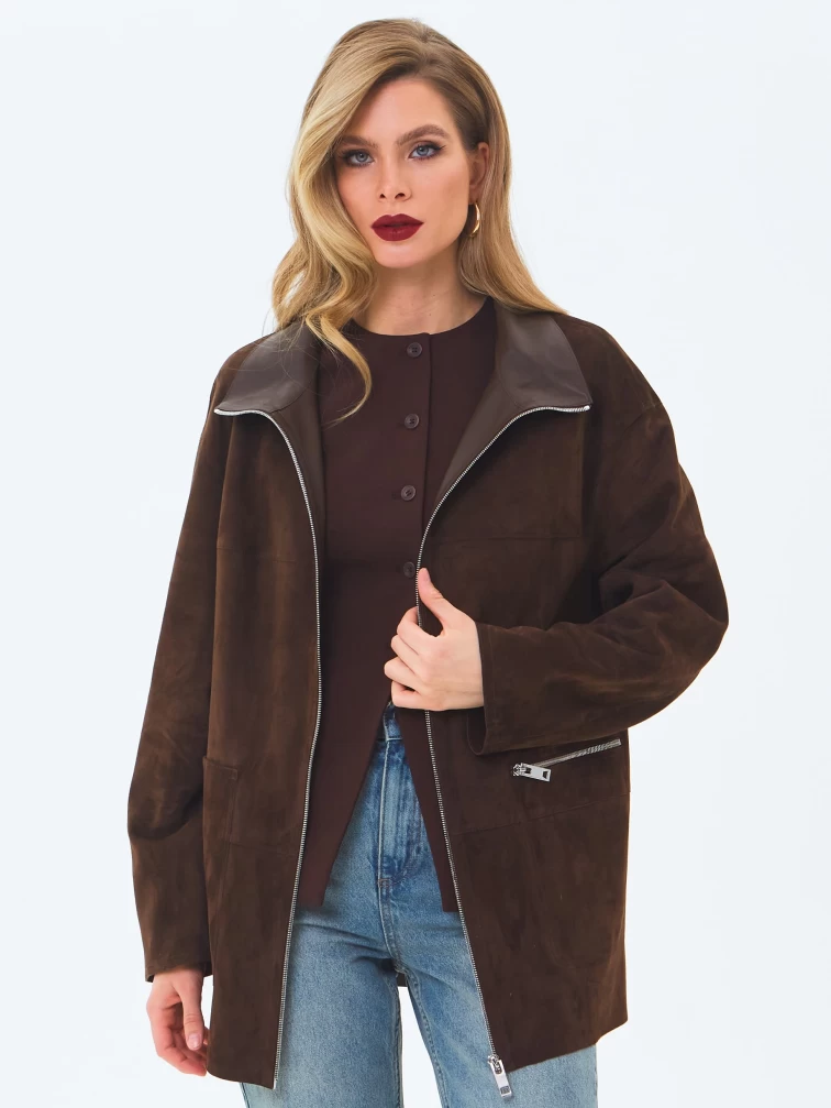Женская замшевая куртка премиум класса 3089з, коричневая, размер 48, артикул 24430