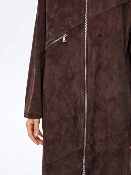 Женский длинный замшевый плащ оверсайз премиум класса 3061з, коричневый, размер 50, артикул 23590