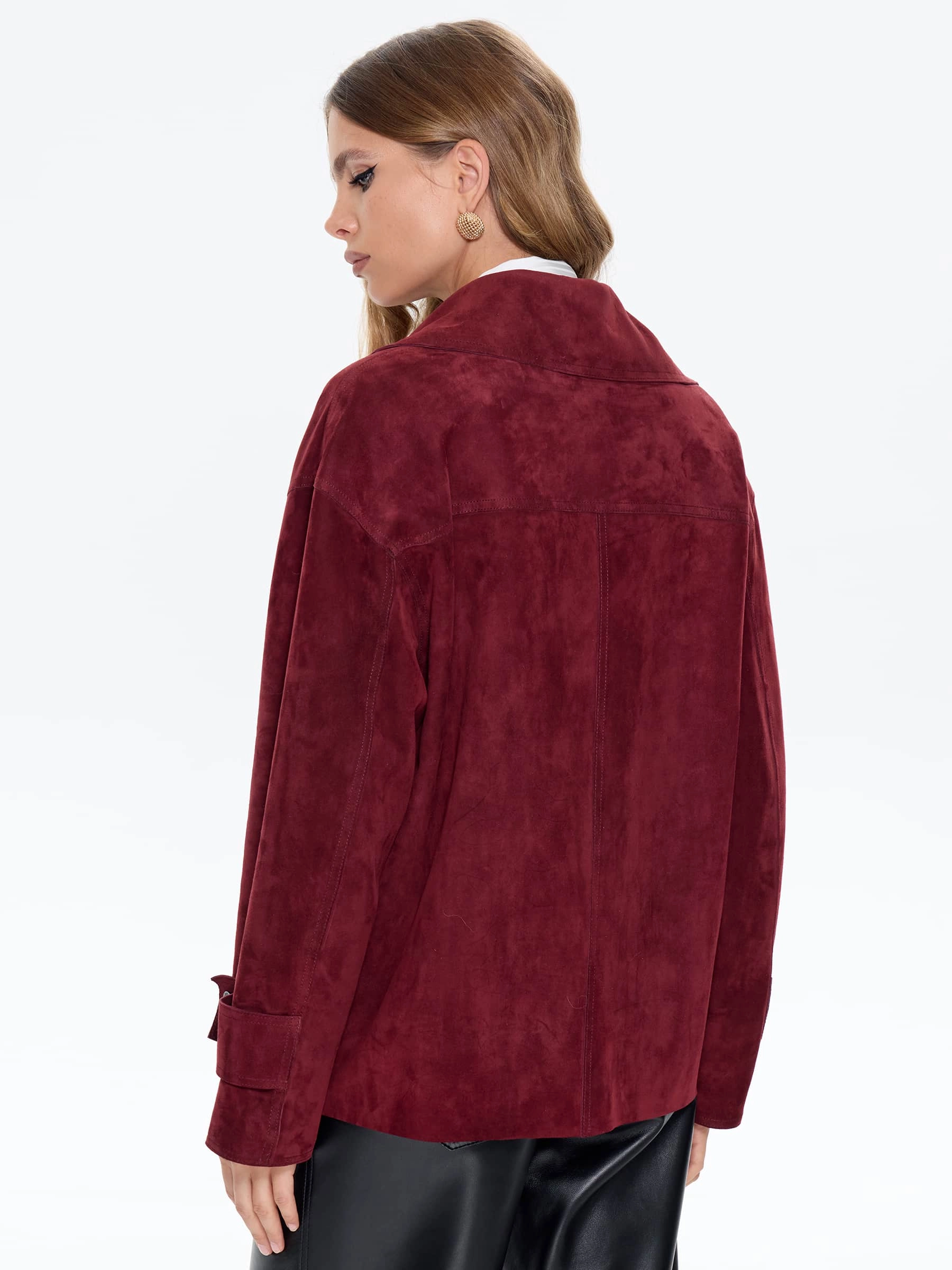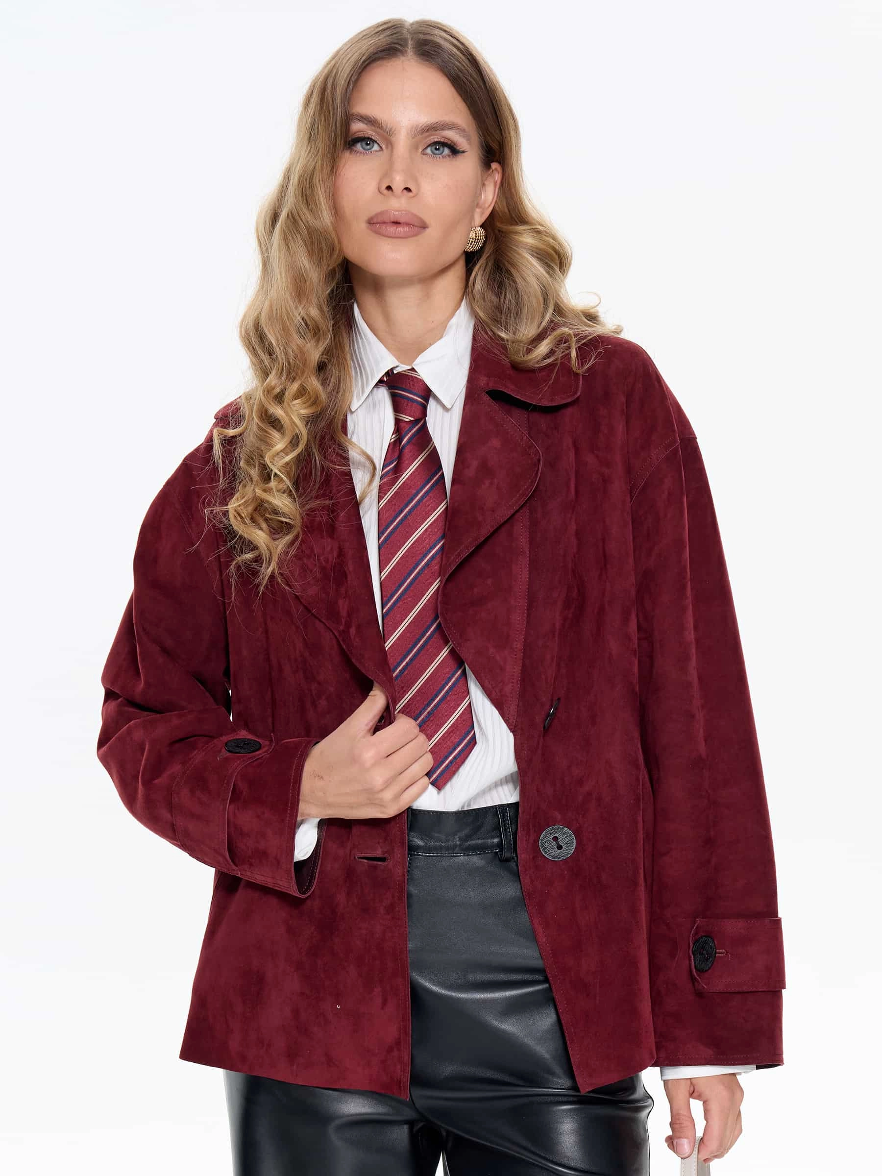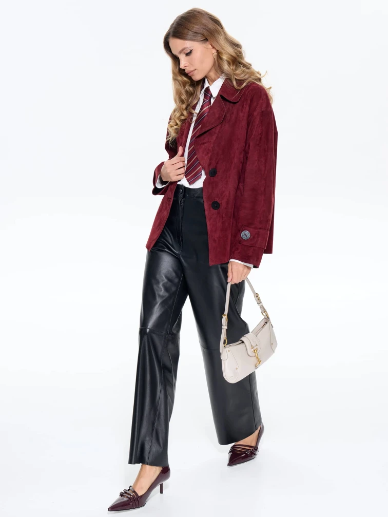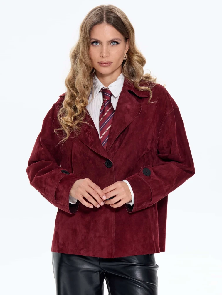 Женский замшевый пиджак премиум класса 3097з, бордовый, размер 46, артикул 24730