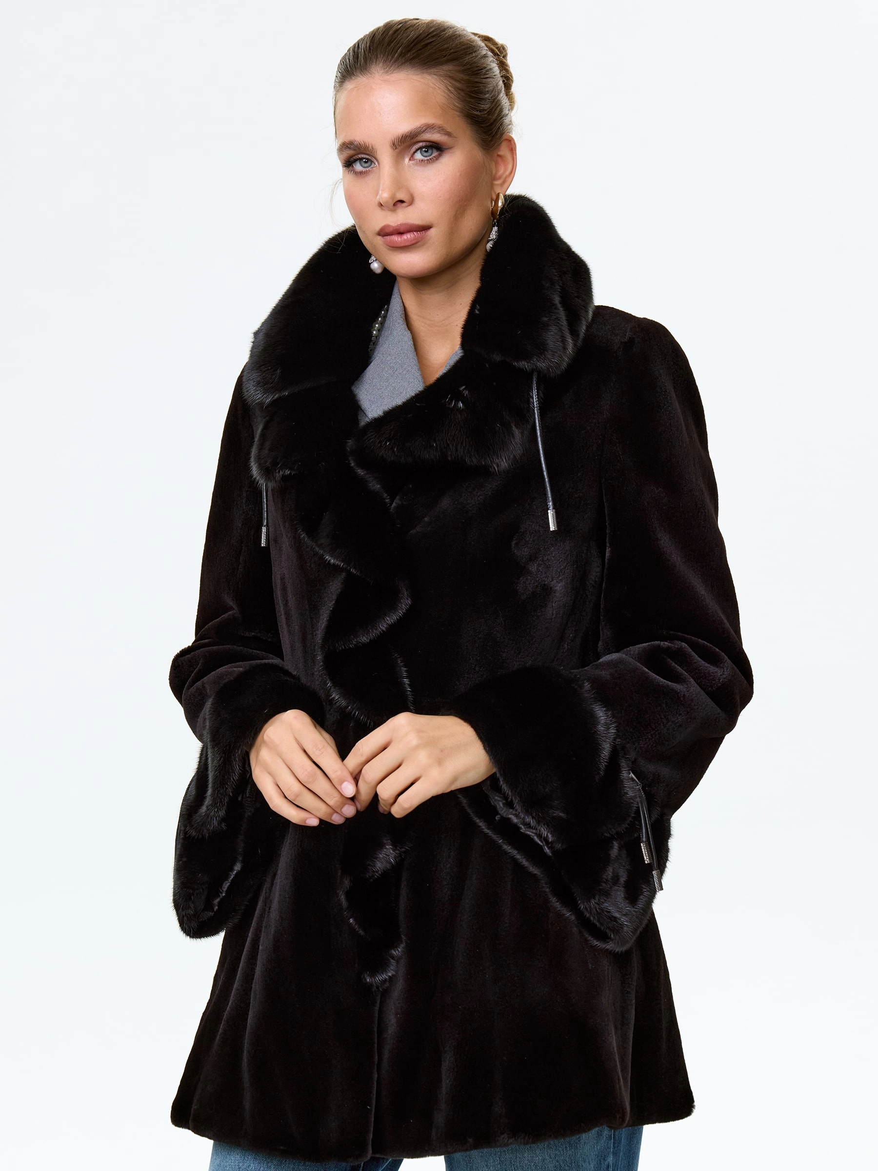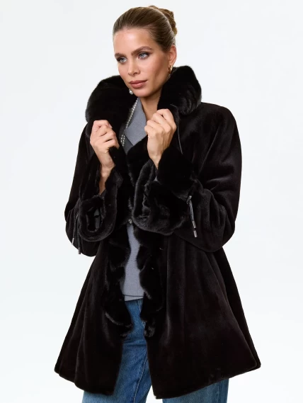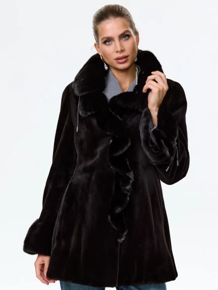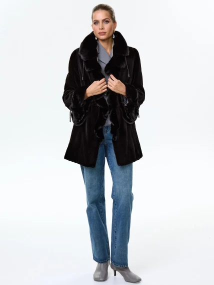 Женское норковое полупальто премиум класса Лика, черное, размер 48, артикул 64580