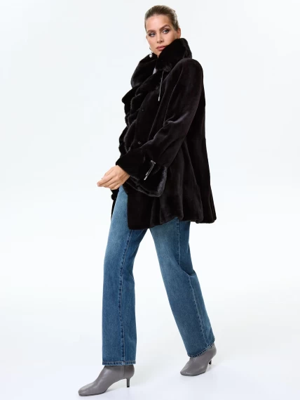 Товар женское норковое полупальто премиум класса лика, черное, размер 48, артикул 64580 выполнен из норка с застежкой клипсы. Рассчитан на сезон: зима. Длина изделия 80 см, силуэт прямой.