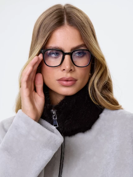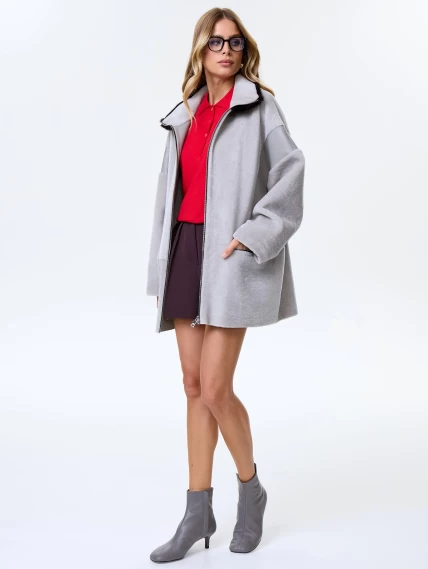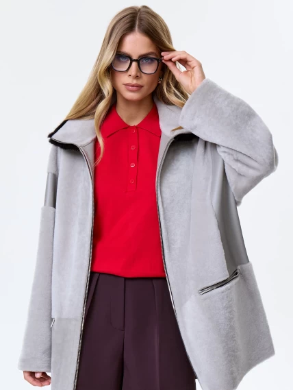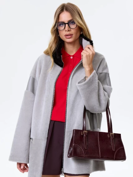 Товар женское полупальто с норковым воротником из натуральной овчины премиум класса 2057, серое, размер 44, артикул 64500 выполнен из овчина "мерино" с застежкой молния. Рассчитан на сезон: осень-зима. Длина изделия 77 см, силуэт свободный.