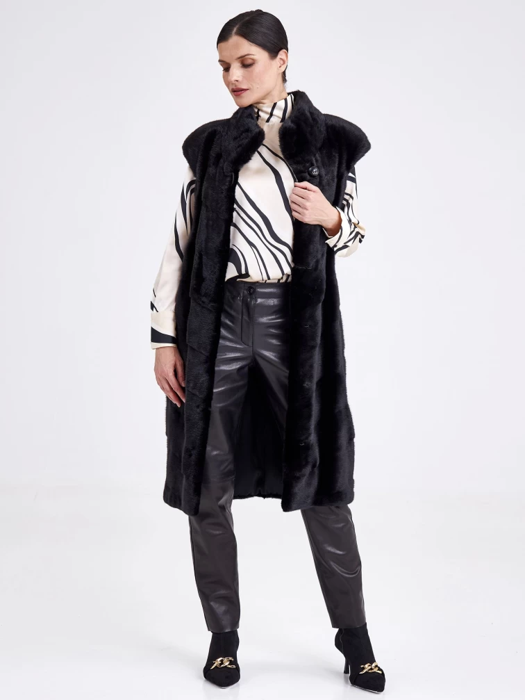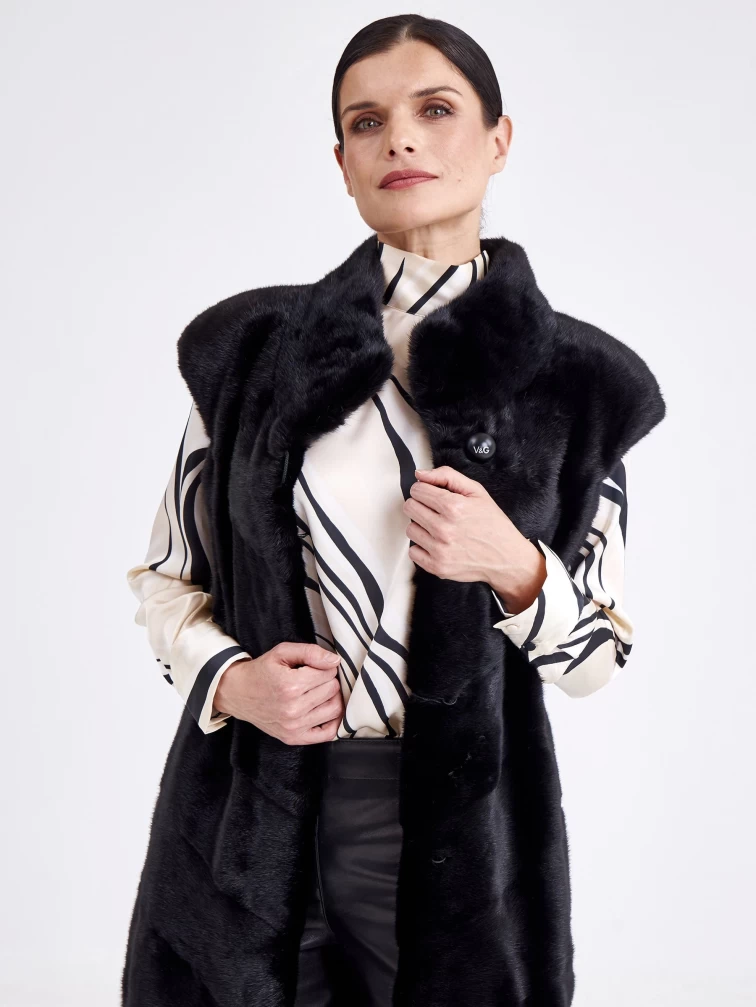 Длинный женский жилет из меха норки 2850(с), черный, размер 44, артикул 33210