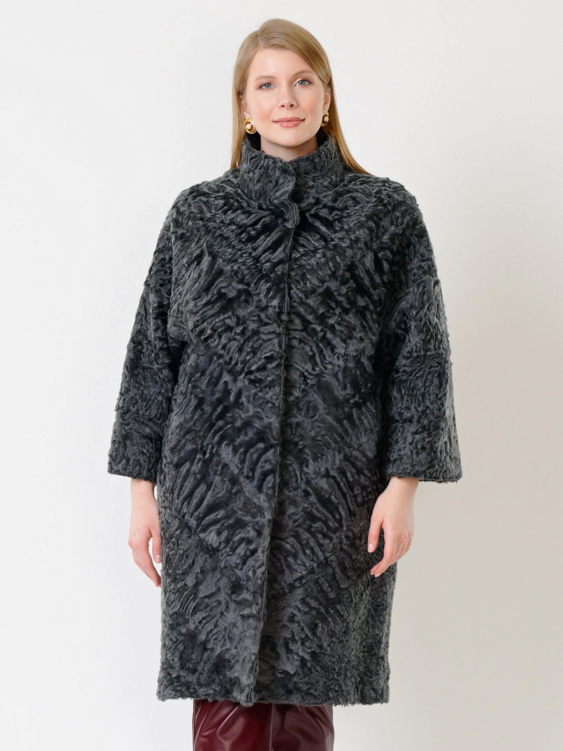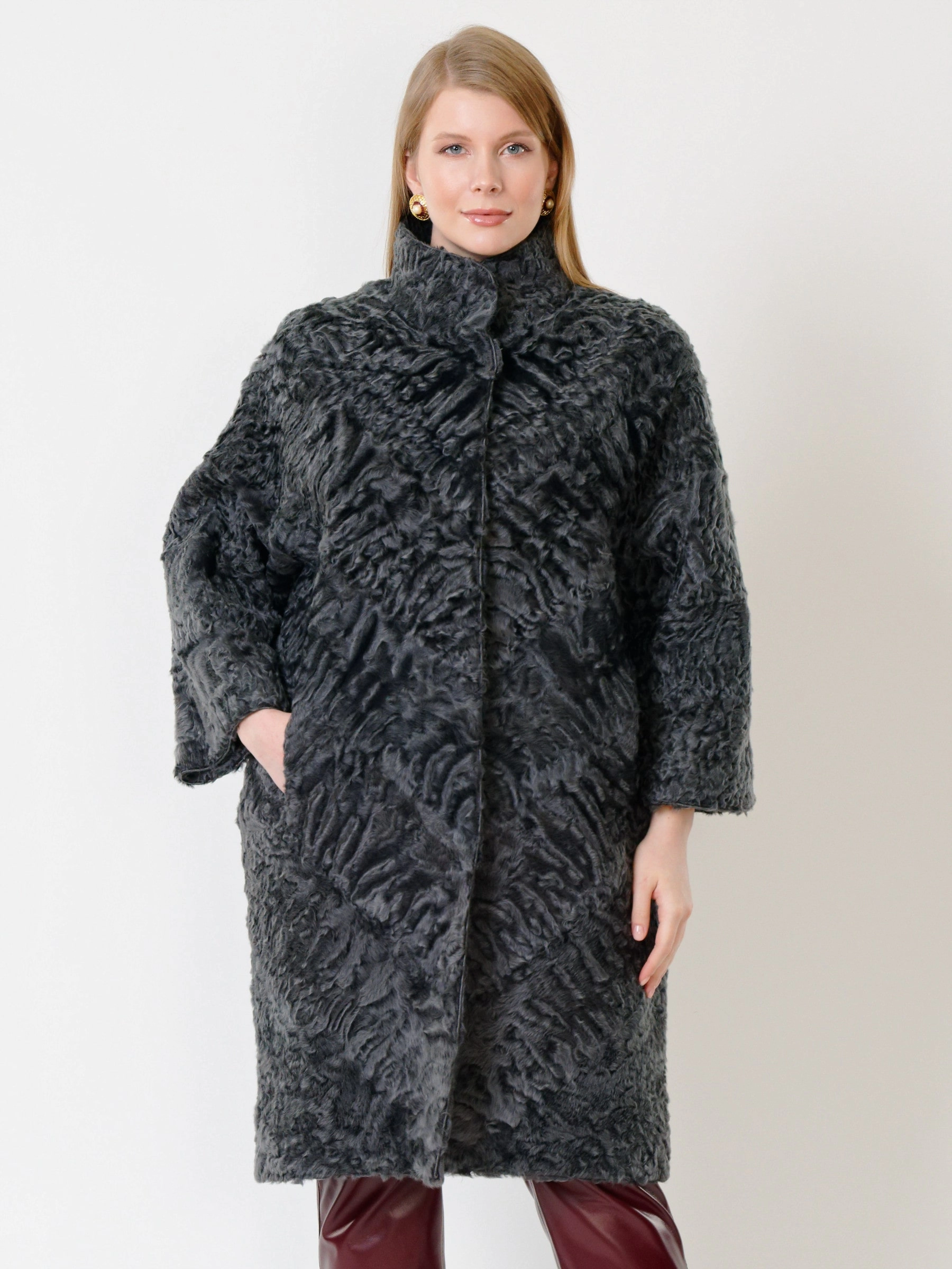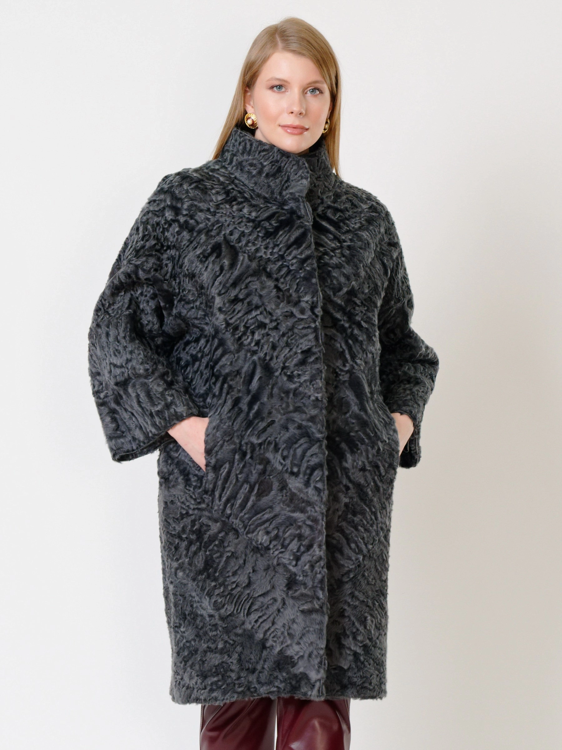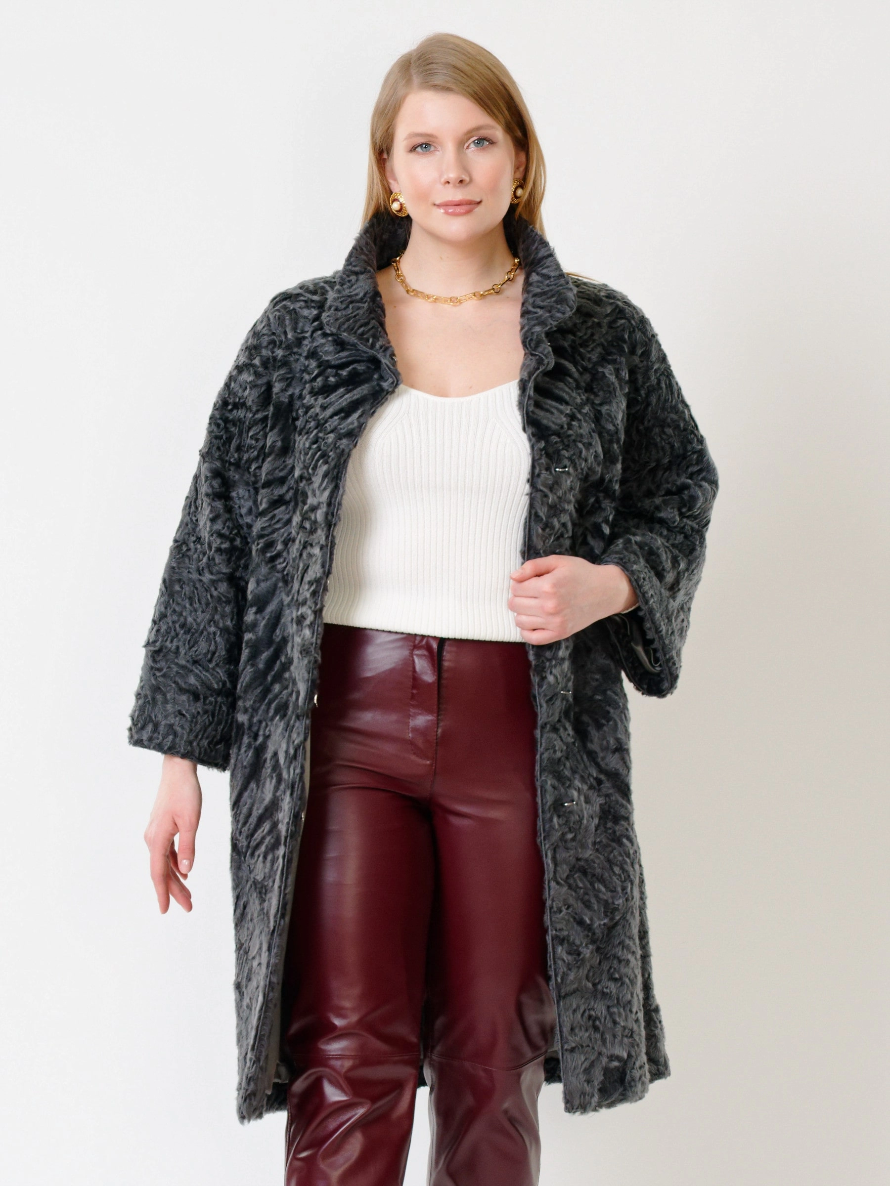 Пальто из афганского каракуля в дуэте с брюками из мягкой, нежной кожи. Что может быть элегантней? Элегантность очаровательна. Это профессиональный крой и пошив одежды, отсутствие лишнего декора. А еще - это индивидуальный стиль. Безупречная посадка.
