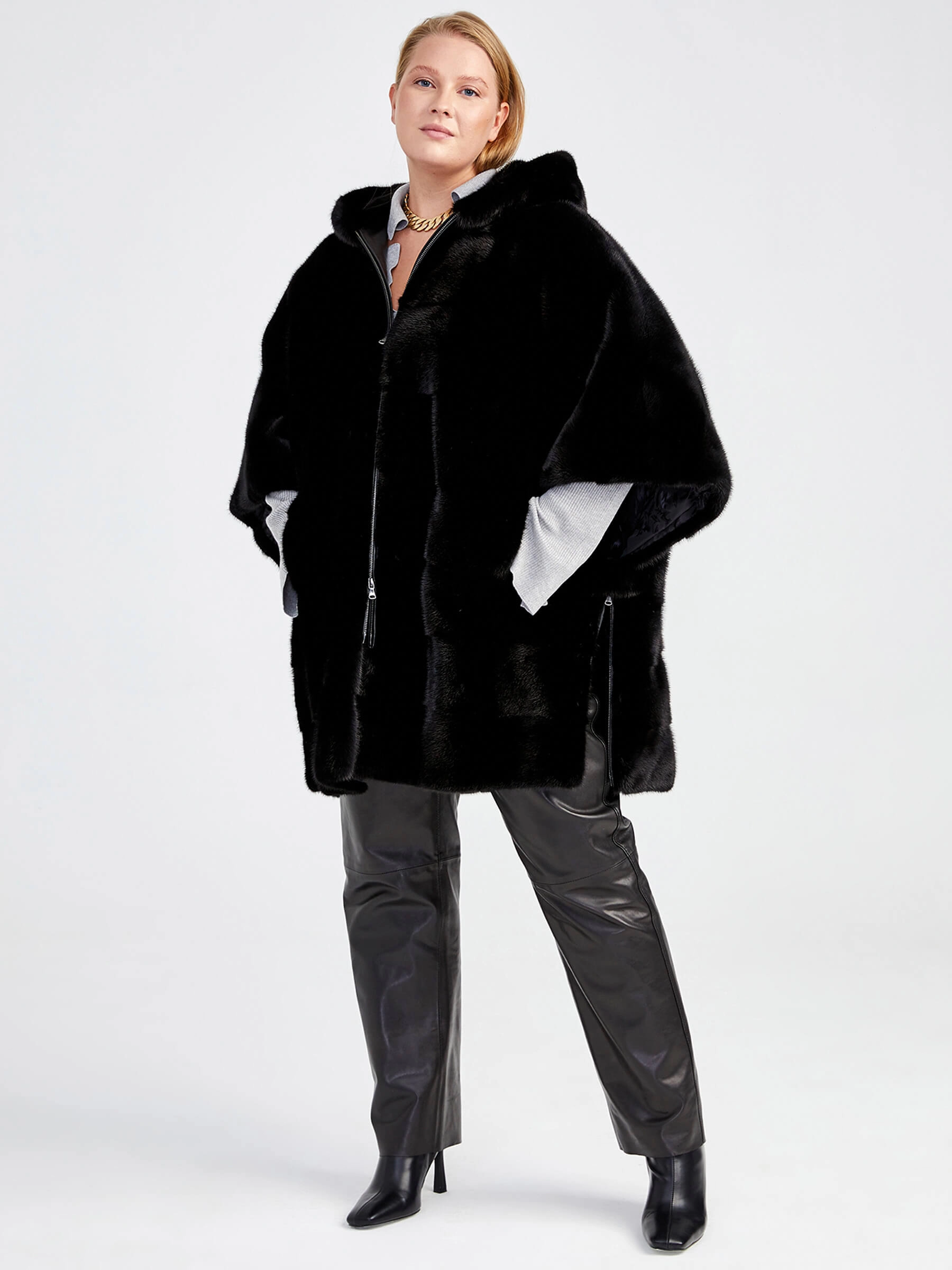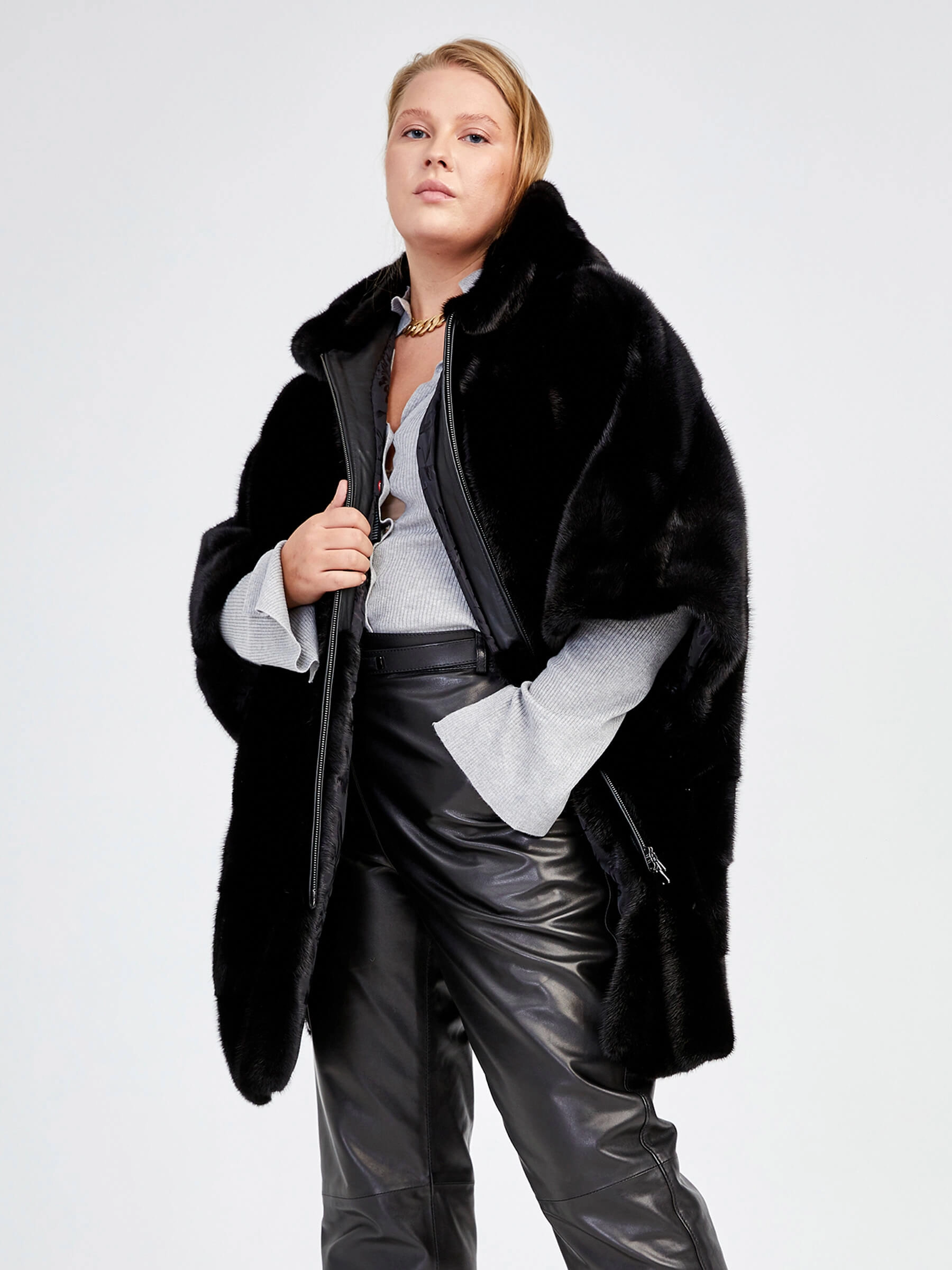 Зимний комплект женский: Шуба из меха норки Эмма + Брюки 04, черный, р. 62, арт. 111312